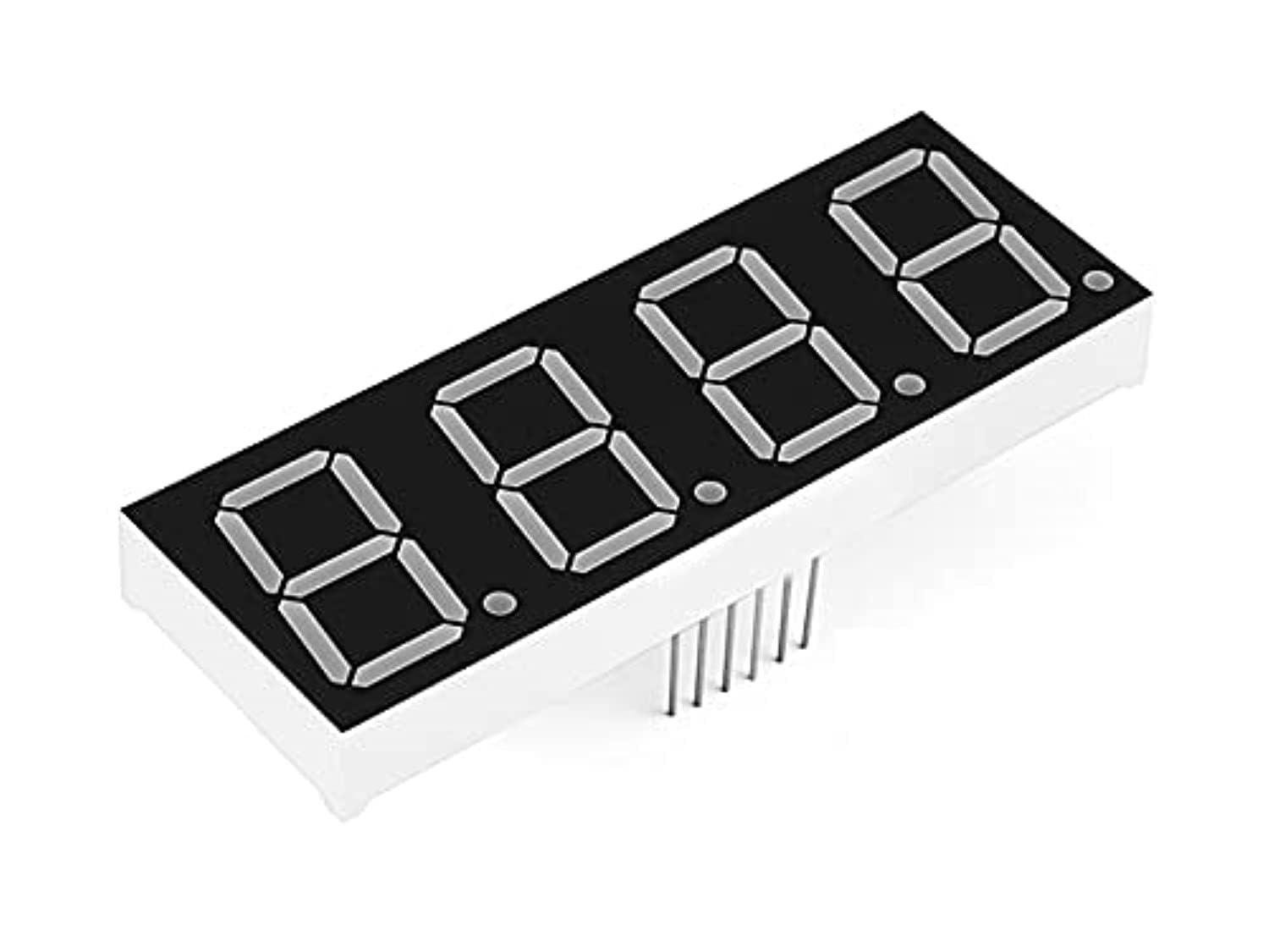 These common-cathode displays feature 4 x 7-segment digits and one decimal point per digit.