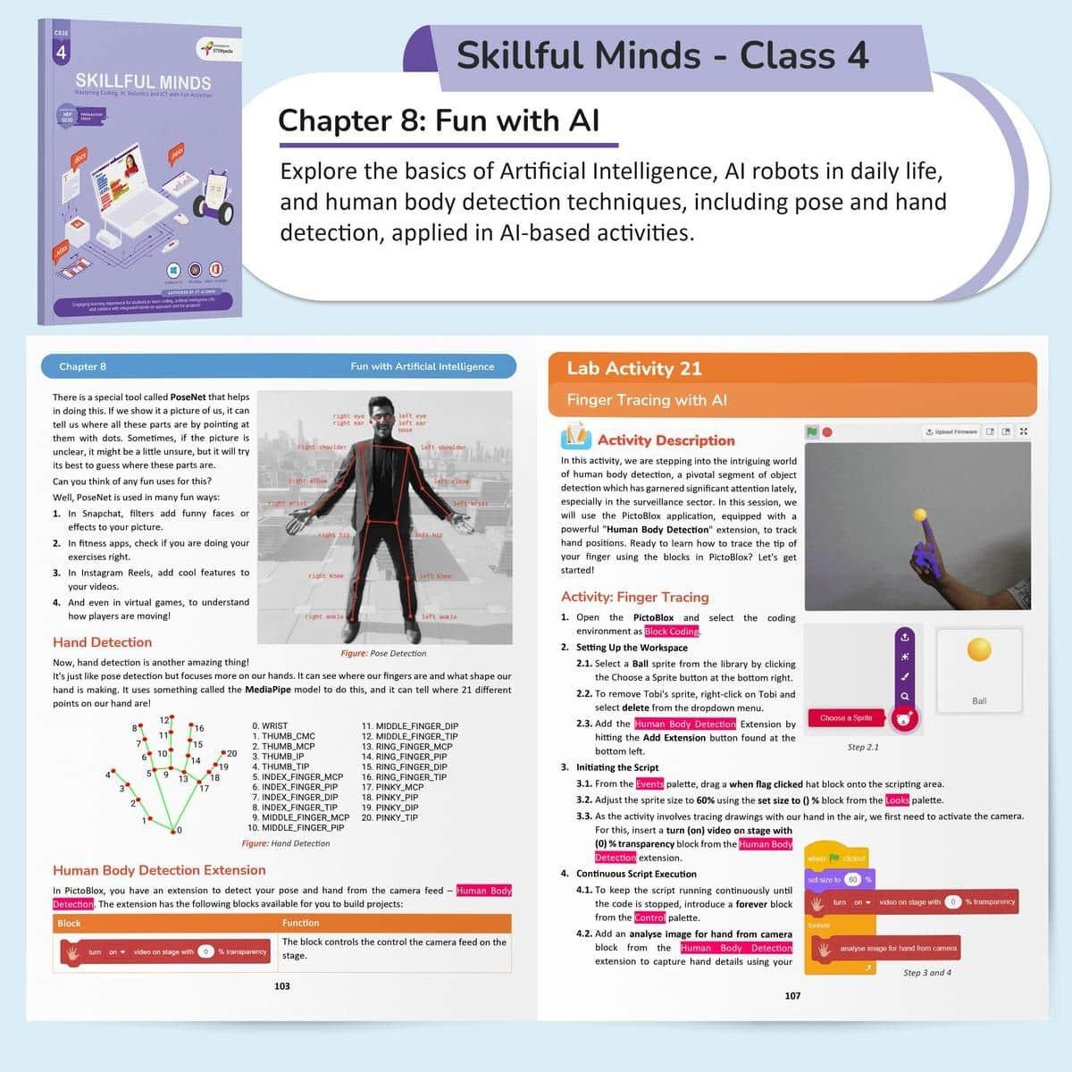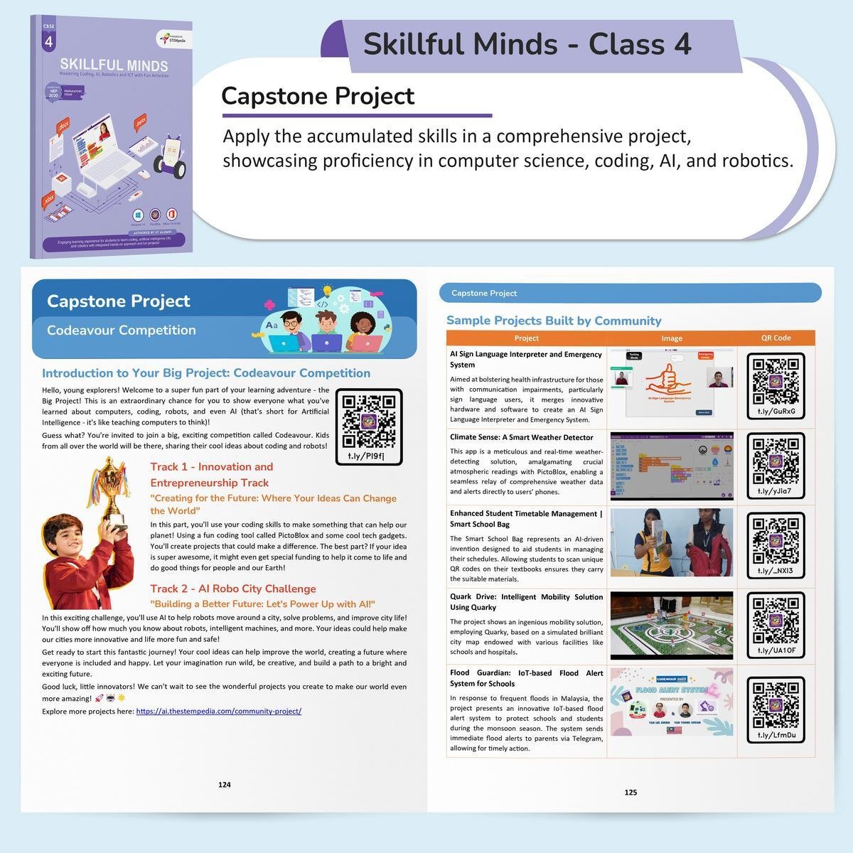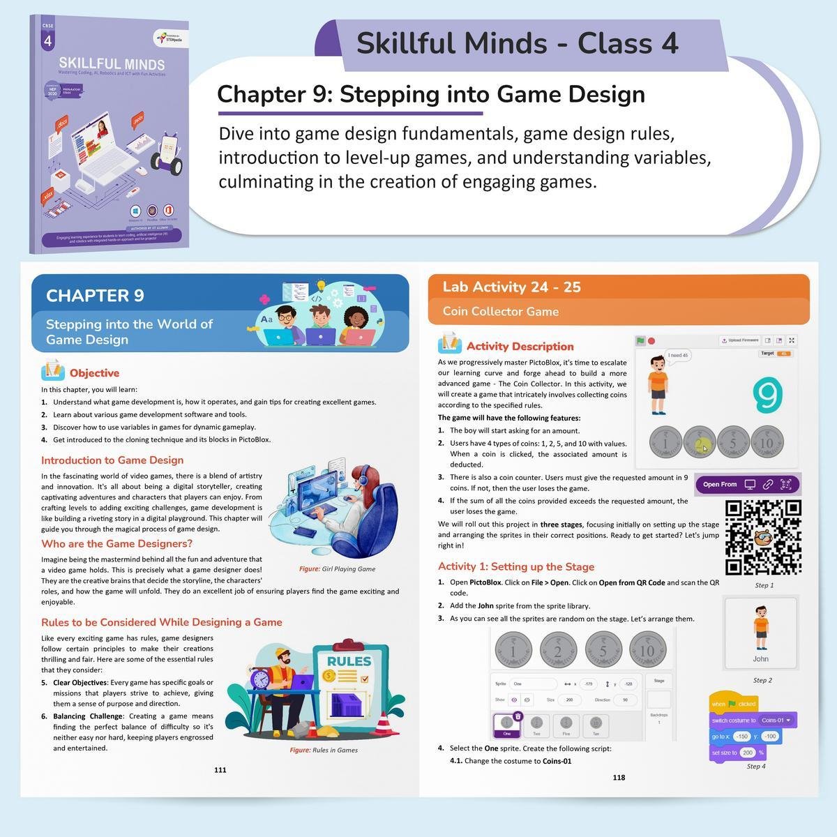 Skillful Minds for Class 4 is an engaging and interactive learning resource designed to equip students with vital 21st-century skills in Coding, Artificial Intelligence, Robotics, and ICT. Developed in alignment with the CBSE curriculum and the National Education Policy (NEP) 2020, this book nurtures digital literacy, creativity, and critical thinking through hands-on activities and real-world applications.