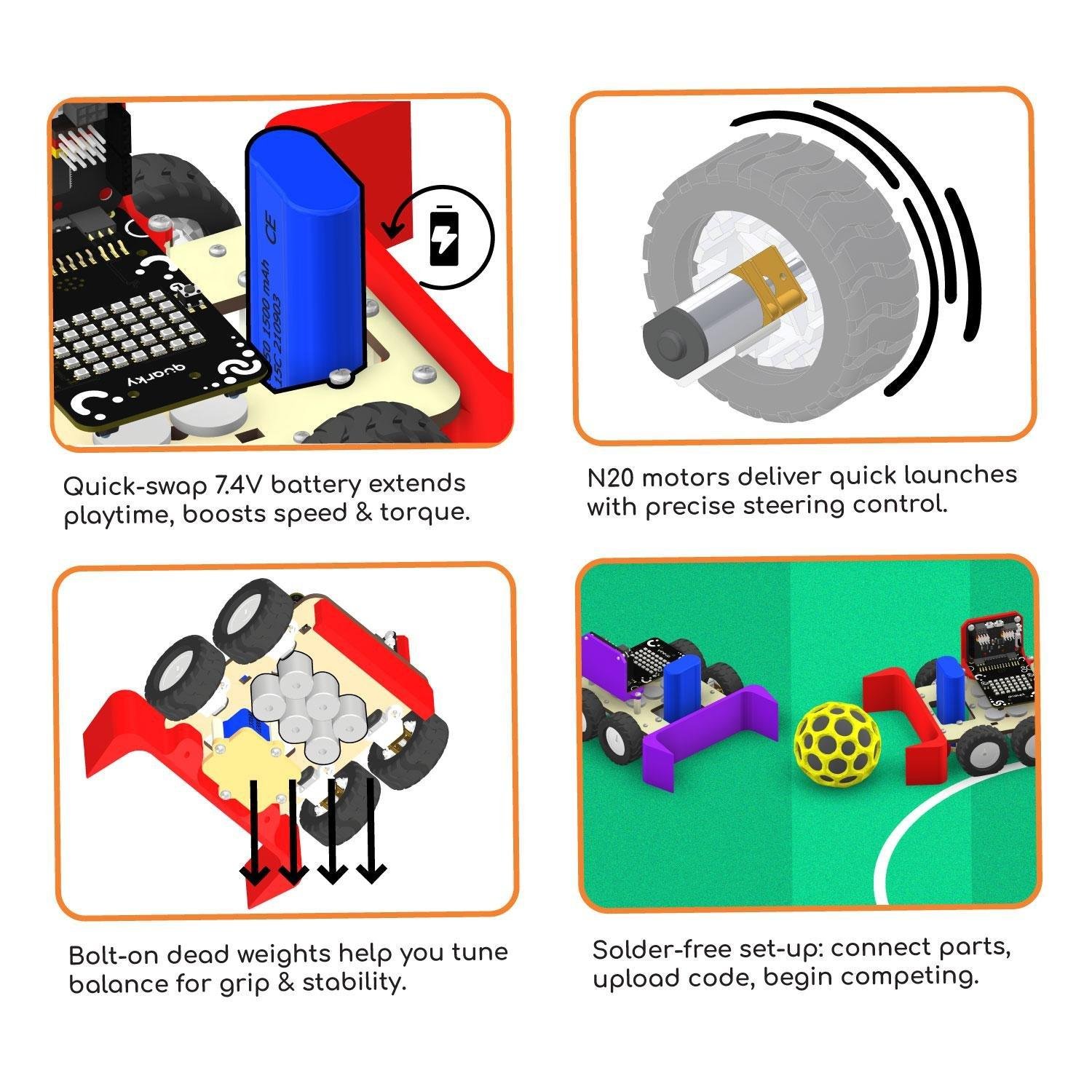 Perfect for aspiring innovators and Robo Soccer competitors — enhance your Quarky, play smarter, and race ahead on the field!