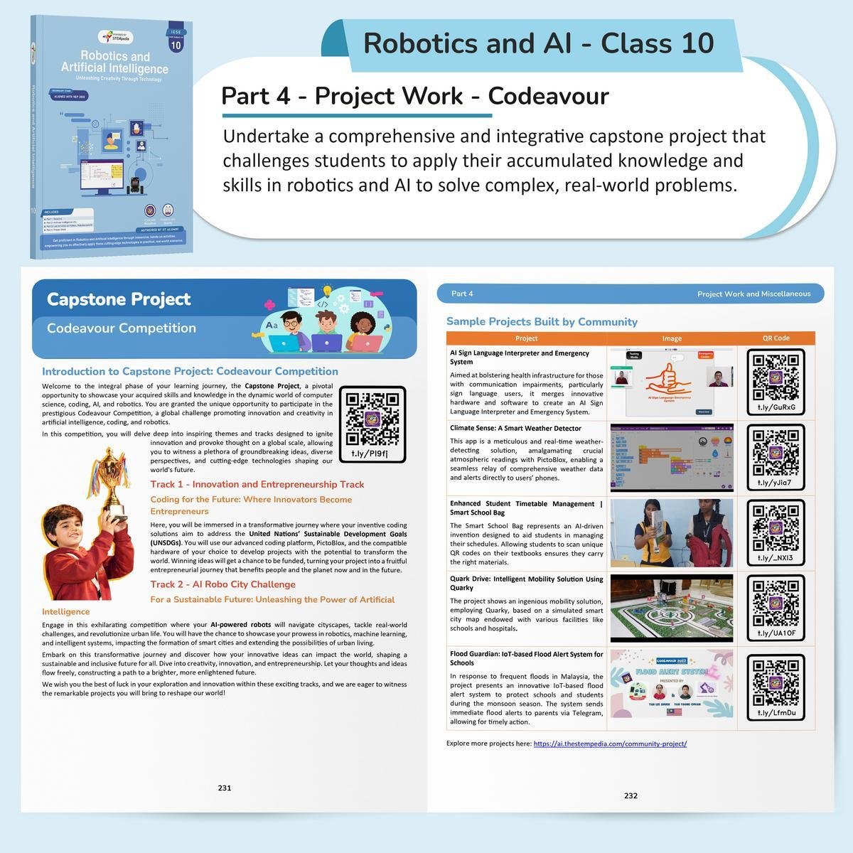 • Global Exposure: Includes access to Codeavourn international AI, Coding, and Robotics competition that nurtures creativity, critical thinking, and awareness of the UN Sustainable Development Goals